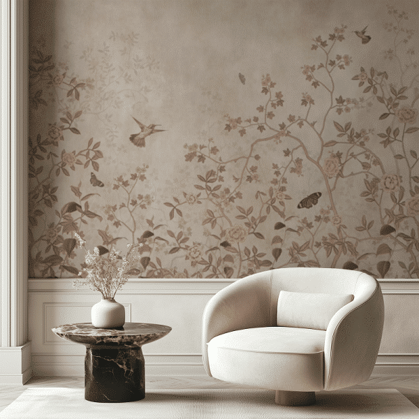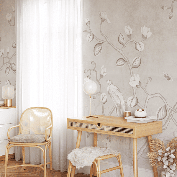Wzory na naszej fototapecie zostały stworzone ręcznie, przy użyciu delikatnej techniki akwarelowej. To właśnie dzięki niej mają tak subtelny, malarski charakter.