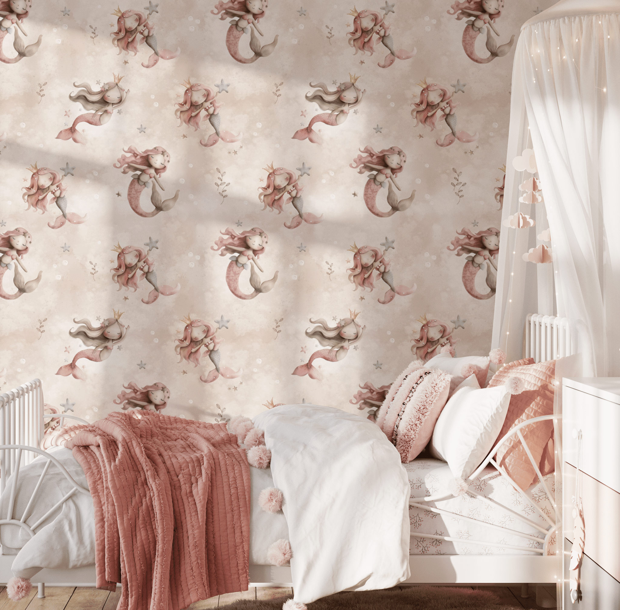 Stwórz magiczną przestrzeń dla swojego dziecka z naszą tapetą ścienną “Syrenki”. Dodaj do koszyka już dziś i zamień pokój maluszka w podwodny świat pełen kolorów i radości!